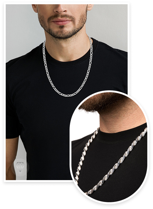 Our brand has become known as a dependable option for elegance and quality as evidenced by the thousands of chains sold and the favorable feedback from customers. Our four signature chain styles Figaro, Rope, Curb and Sterling Gold-Plated Curb are all chosen for their striking appearance and enduring shine.